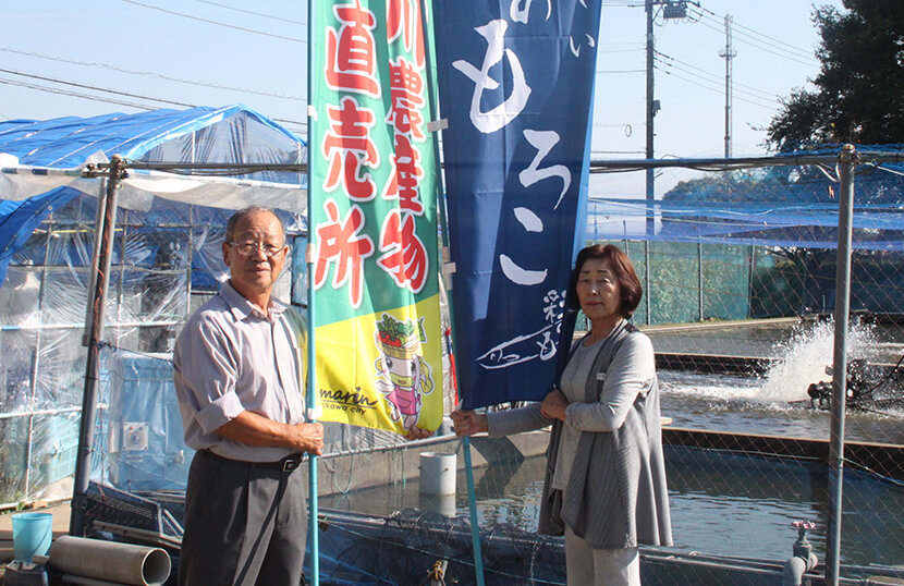 吉川市農産物販売マップは、新鮮で安全安心な農産物を地元の消費者にお買い求めいただくことを目的に、生産者の方々にご協力いただき制作しました。直売所については、こののぼり旗が目印です。